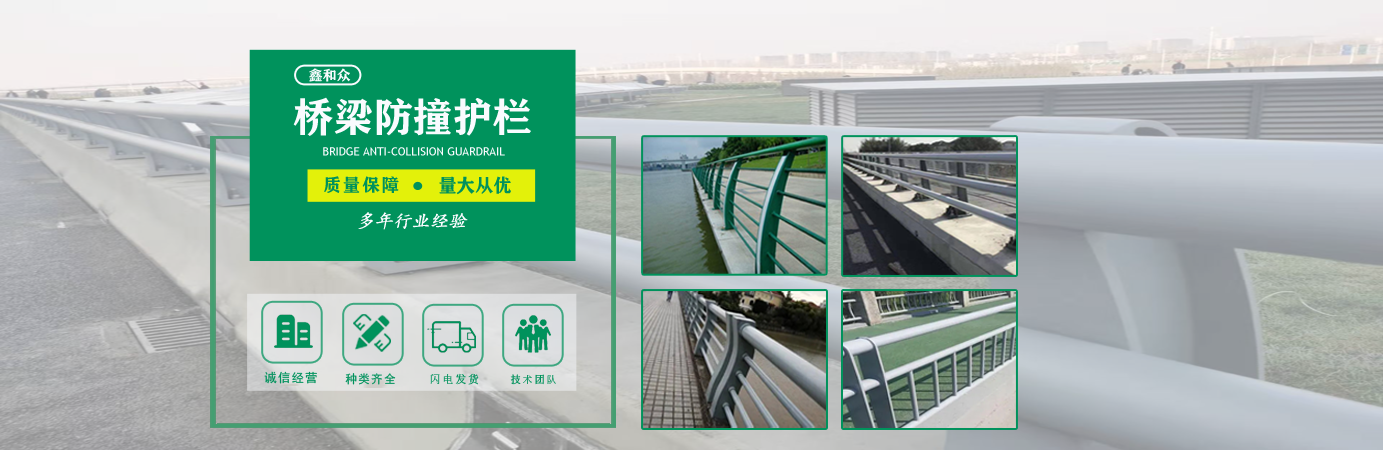 山東鑫和眾金屬制品有限公司主要產(chǎn)品有防撞護(hù)欄,橋梁護(hù)欄,道路護(hù)欄,河道護(hù)欄,不銹鋼護(hù)欄等護(hù)欄。提供設(shè)計(jì)方案,一站式定制,包您滿意價(jià)格優(yōu)惠,歡迎來(lái)電咨詢!    公司常年從事銷售護(hù)欄防撞護(hù)欄,橋梁護(hù)欄,道路護(hù)欄,河道護(hù)欄,不銹鋼護(hù)欄,橋梁鋼護(hù)欄,河道燈光護(hù)欄等。產(chǎn)品廣泛應(yīng)用于橋梁、河道、旅游景區(qū)、道路、公路、公園、小區(qū)、景觀、道路防撞等領(lǐng)域。    公司產(chǎn)品均采用優(yōu)質(zhì)不銹鋼材料,符合相關(guān)標(biāo)準(zhǔn)。各種型號(hào)不銹鋼復(fù)合管及護(hù)欄,質(zhì)量嚴(yán)格把控。產(chǎn)品強(qiáng)度高、耐腐蝕、焊接牢固、抗沖擊、性能好,防撞護(hù)欄結(jié)構(gòu)簡(jiǎn)單、美觀實(shí)用大方。     歡迎前來(lái)訂購(gòu)!...